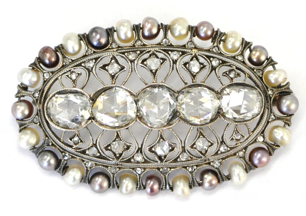Silver was more important than ever for setting diamonds when a new discovery was made in South Africa in 1867. While silver was loved for showing off diamonds at their sparkling best, there was one small issue, it oxidized and left marks on the skin and clothes that it touched, so it was often backed with gold, which does not stain skin or clothes. This technique is known as silver topped gold and it was used throughout the middle of the 1700s through the 1800s.