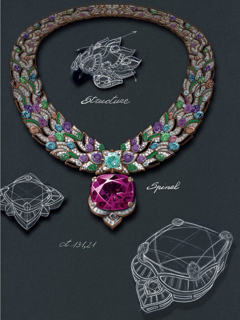 Bvlagri Polychroma details the story of the Maison’s newest high jewelry collection, from start to finish, as well as the inspiration and design process that went into creating it. Colored gemstones are at the heart of Bvlgari’s innovative jewels that capture the vibrant spirit of Rome and Italy through bold forms and unexpected combinations of hues that create the harmonious beauty of the Polychroma high jewelry collection.